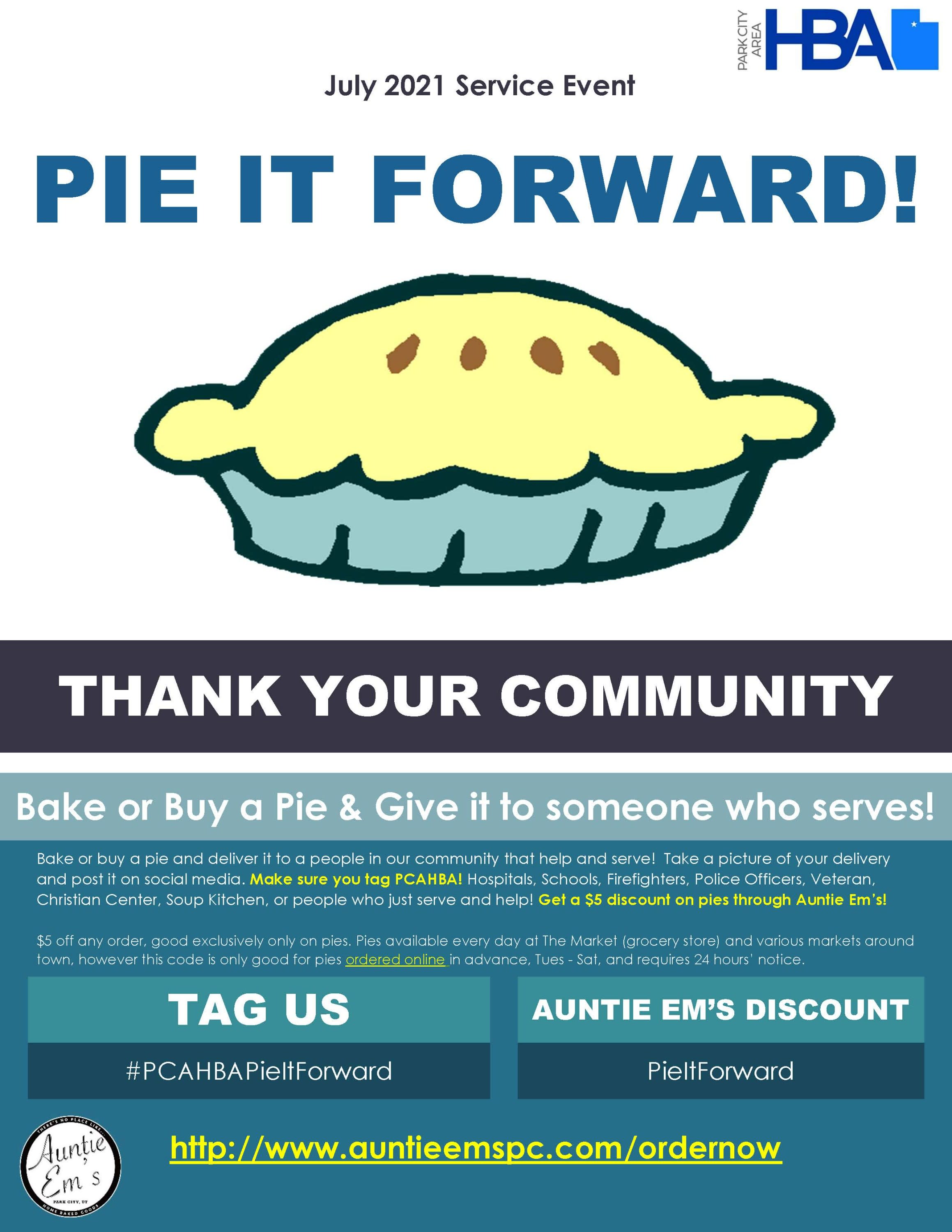 Post on social media and tag the PCAHBA. #PCAHBAPieItForward