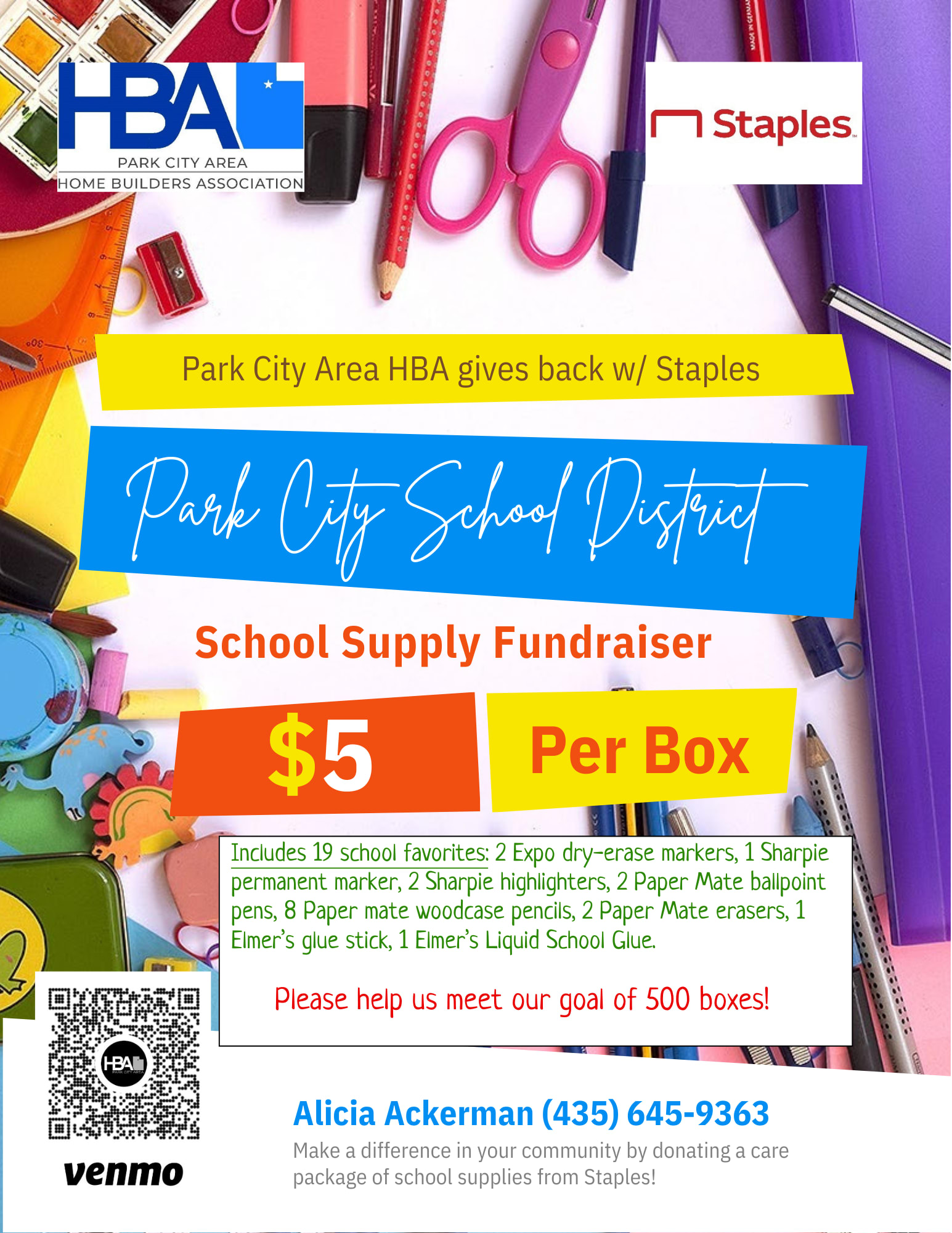 The Park City HBA is joining forces with our local Staples to help provide school supply boxes to our local school districts.